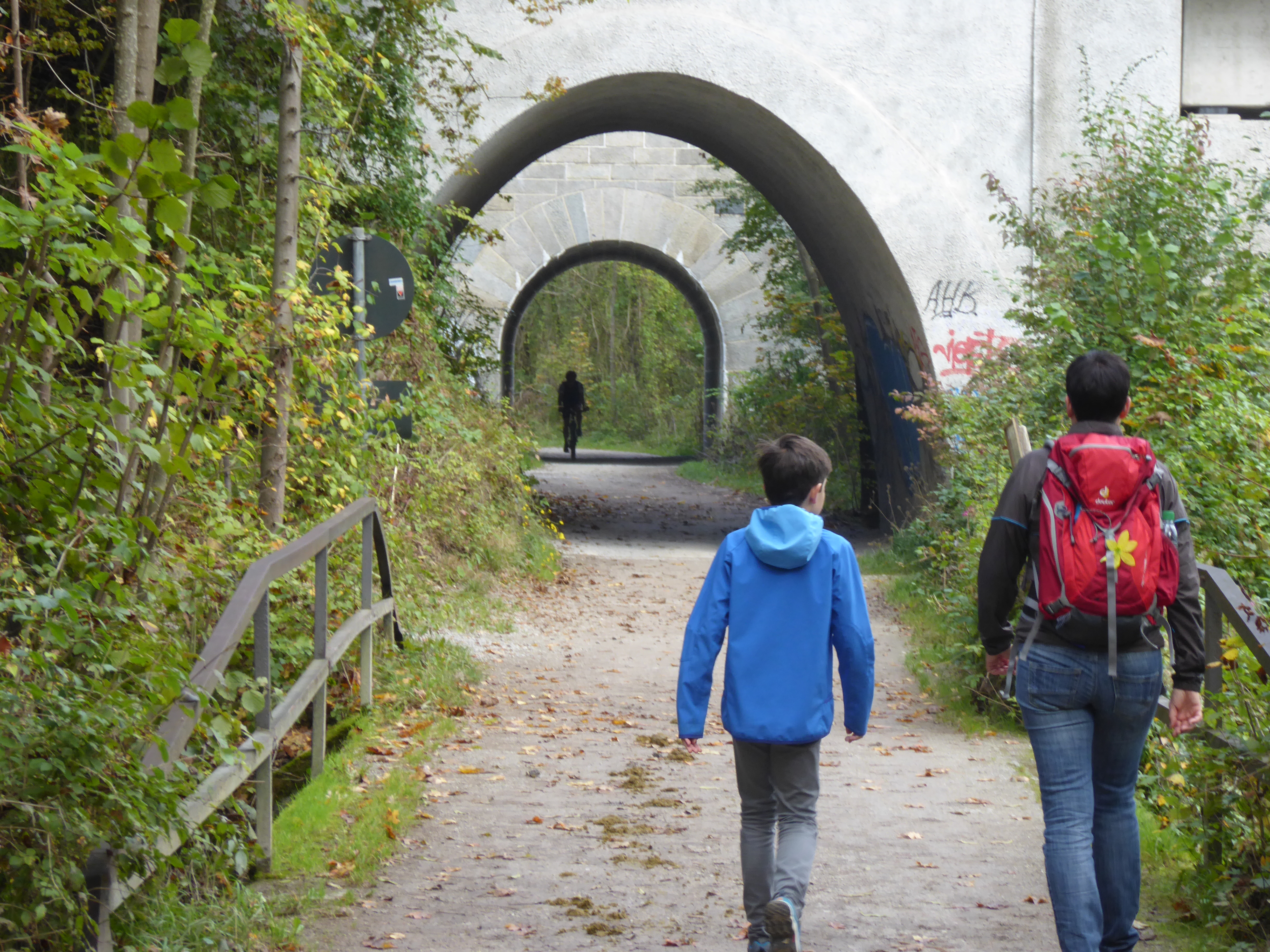 Es nebelt noch ziemlich, als wir am Morgen des Tags der Deutschen Einheit in die U-Bahn steigen. Vom Bahnhof Studentenstadt geht es los. Im Biergarten Aumeister „Auszogne“ gegessen und weiter zu unserem Ausgangspunkt, dem Kilometer 141, direkt an der Brücke vom Föhringer Ring. Neuland.Hier sind wir noch nie zu Fuß unterwegs gewesen.