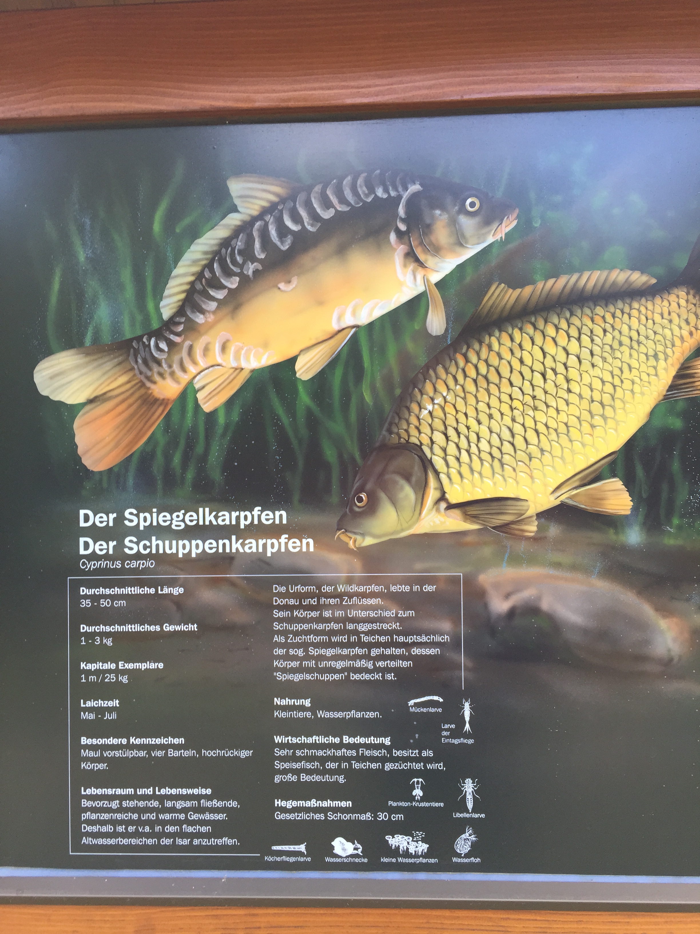 Der Landauer Fischerverein ist ordnungsliebend. Die Boote liegen nicht halbverreckt im Wasser, sondern sind an Land gezogen. Und er macht gute Öffentlichkeitsarbeit. Alle 200m steht eine Infotafel mit einem oder zwei Isarfischen drauf. Nachteil: vor lauter Lesen rauscht unser Kilometerschnitt in den Keller – Wir sind aber verblüfft ob der Artenvielfalt.